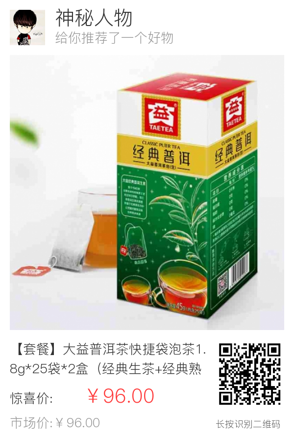 【套餐】大益普洱茶快捷袋泡茶1.8g*25袋*2盒(经典生茶+经典熟茶)